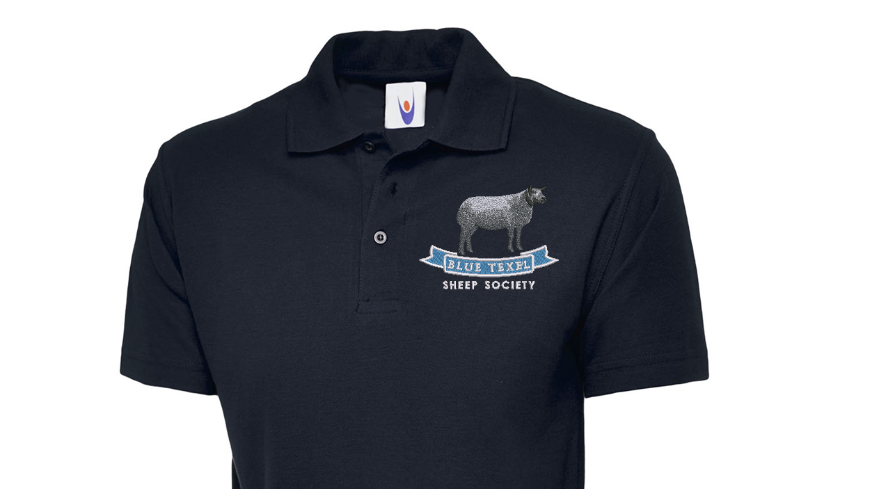 Polos are embroidered with the Blue Texel Sheep Society logo on the front left chest, flock names can be added to this item above the logo in capitals.